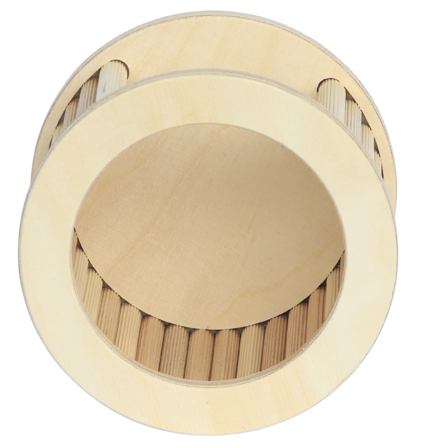 Die feinen Dübel an der Außenwand verleihen dem Häuschen eine hochwertige, stabile Struktur und gleichzeitig einen dekorativen Look. Die geschlossene Oberseite dient zusätzlich als Aussichtsplattform, auf der dein Hamster sitzen, snacken oder einfach die Umgebung beobachten kann.