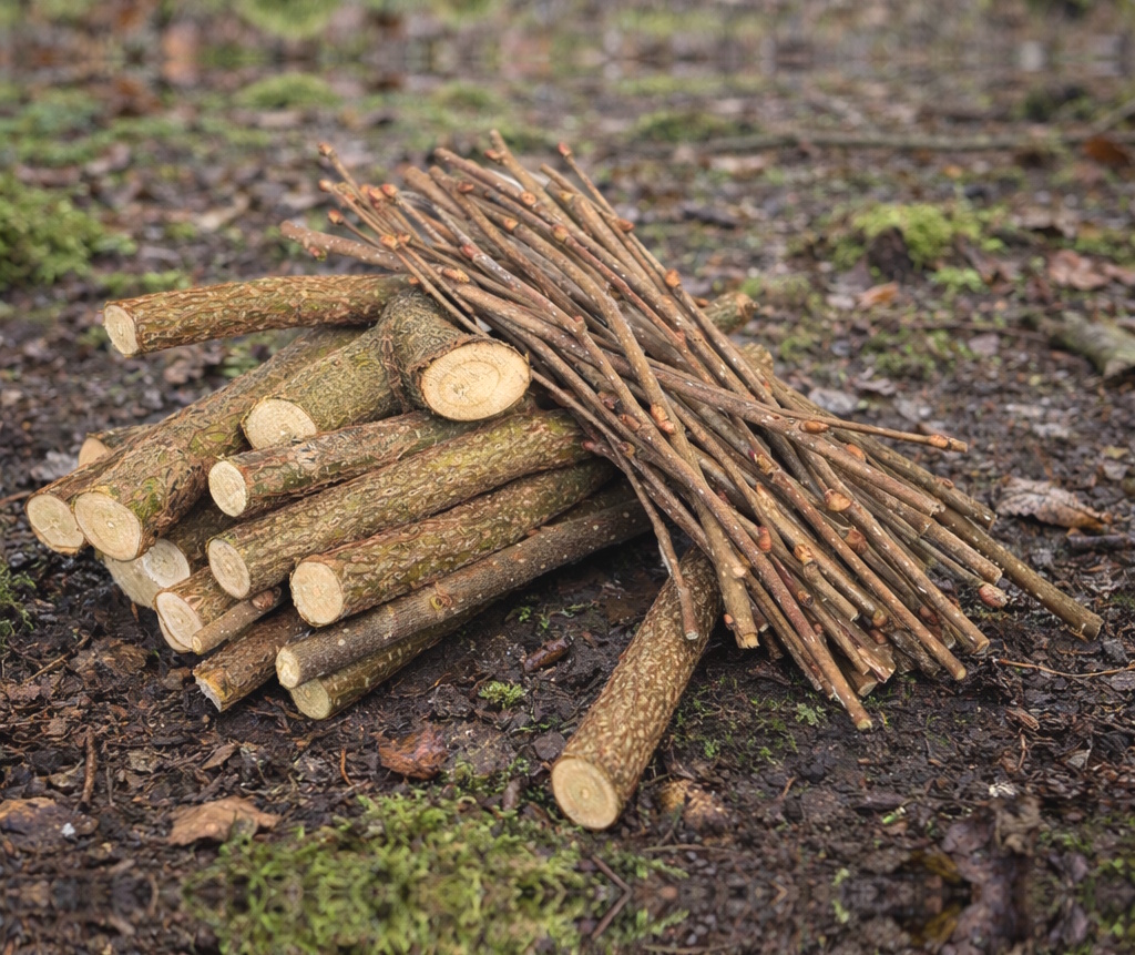 1 Kg Knabberhölzer aus Haselnuss, unterschiedliche Dicke
