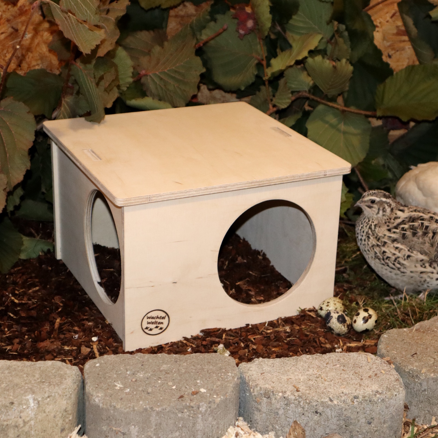 Ob als Unterschlupf, Ruheplatz oder einfach als hübsches Element im Gehege – die Wachtelstube fügt sich durch ihren natürlichen Holzlook harmonisch in jede Umgebung ein. Das hochwertige Material ist robust, langlebig und zugleich leicht genug, um das Häuschen problemlos umzustellen.