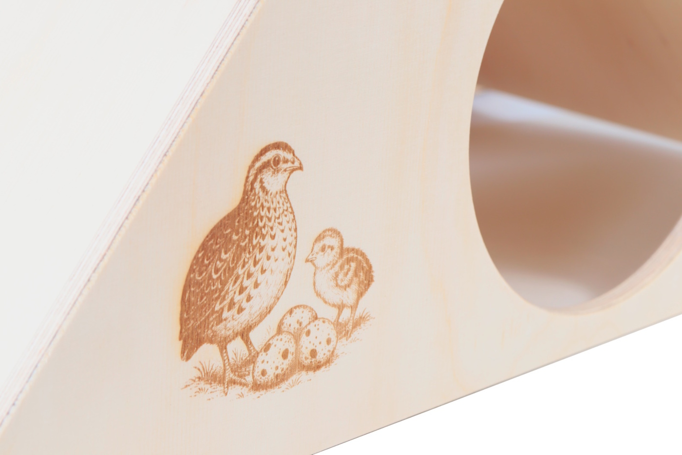 Die offene Unterseite unterstützt das natürliche Verhalten deiner Wachteln – ideal zum Einrichten mit Heu oder Stroh.