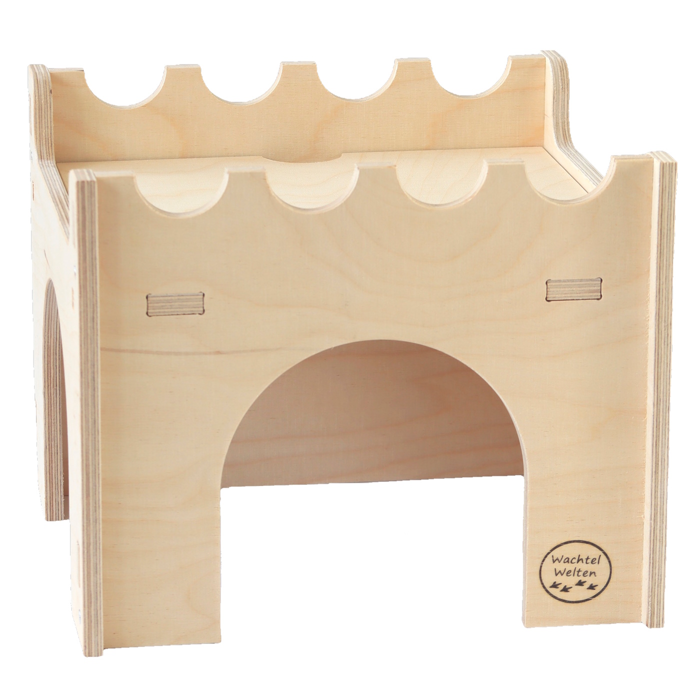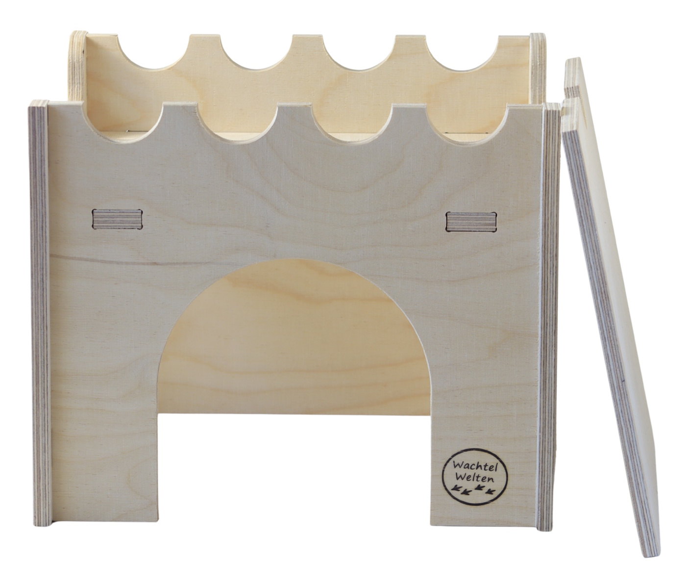 Ob zum Dösen oder Eierlegen: Das geräumige Innere lädt zum Verweilen ein. Die durchdachten Seiteneingänge fördern das Sicherheitsgefühl der Tiere und sorgen für ein angenehmes Wohnklima in den Turmmauern. Alle Maße und Öffnungen wurden mit Blick auf langjährige Erfahrung in der Wachtelhaltung ausgearbeitet.