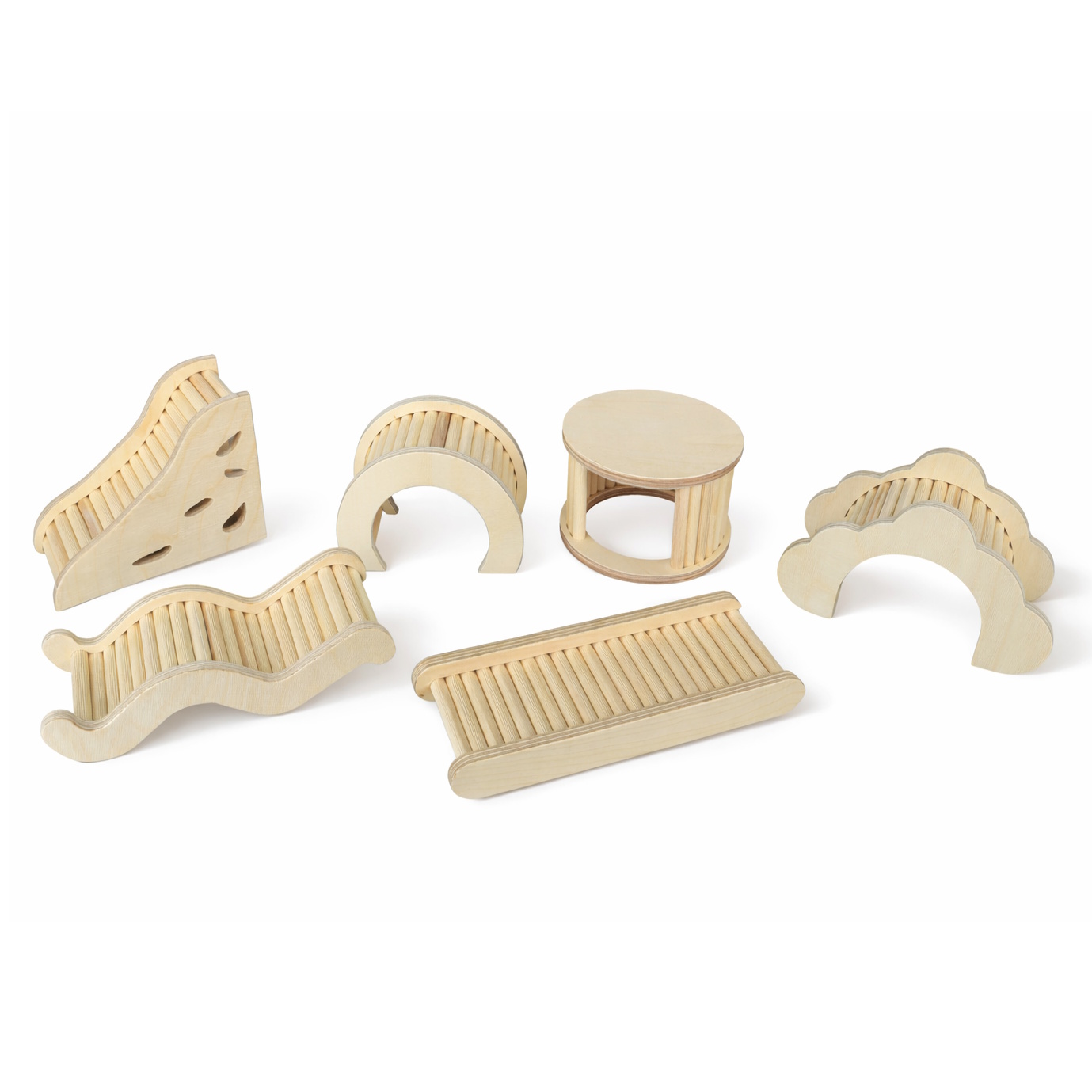 Dieses Set kombiniert Rückzugsorte, Klettermöglichkeiten und Spielspaß in einem. Dübelverstecke, Leitern und Rampen fördern natürliche Verhaltensweisen wie Klettern, Erkunden und Verstecken, sorgen für Abwechslung im Gehege und machen Dein Hamster- oder Mäuseheim zu einem sicheren, aktiven Wohlfühlparadies.